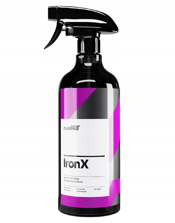 CARPRO IronX to zaawansowany dekontaminator o neutralnym pH, stworzony do bezpiecznego i skutecznego usuwania zanieczyszczeń metalicznych z powierzchni lakieru, felg, szkła, chromu oraz tworzyw sztucznych.