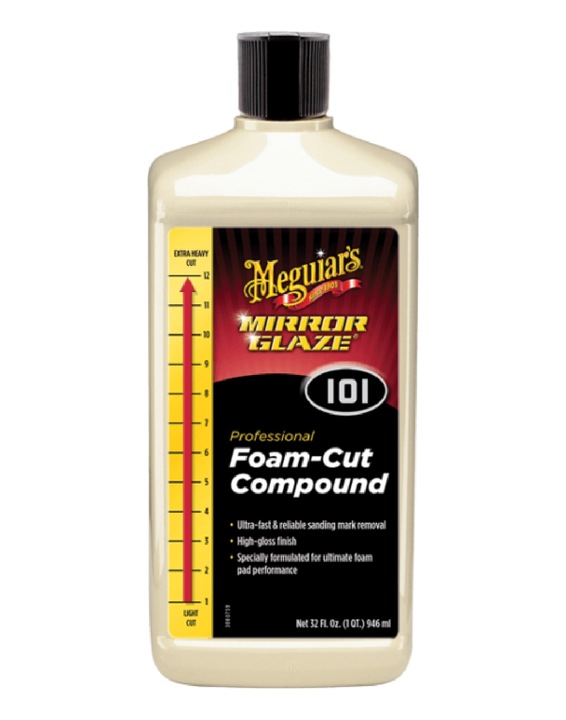 Meguiar’s Foam Cut Compound stosuje udoskonaloną technologię Super Micro Abrasive w połączeniu z produktami Soft Buff Foam Compounding Pad oraz Easy Buff Backing Plate tworzy wydajne i bezpieczne rozwiązanie. Zapewnia ultra szybkie i skuteczne usuwanie śladów szlifowania, tworząc przy tym wysoki połysk.