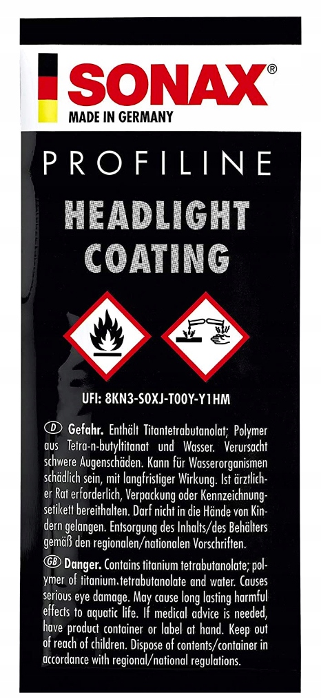 SONAX Profiline Headlight Coating Powłoka do lamp saszetka 5ml zawiera wyjątkowo skuteczny preparat do długotrwałego zabezpieczenia plastikowych reflektorów w samochodzie. Można nakładać go na nowe lub świeżo wypolerowane powierzchnie.